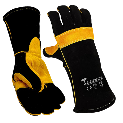 Fire Resistant Safety Welding Gloves Black Yellow (IT-101)